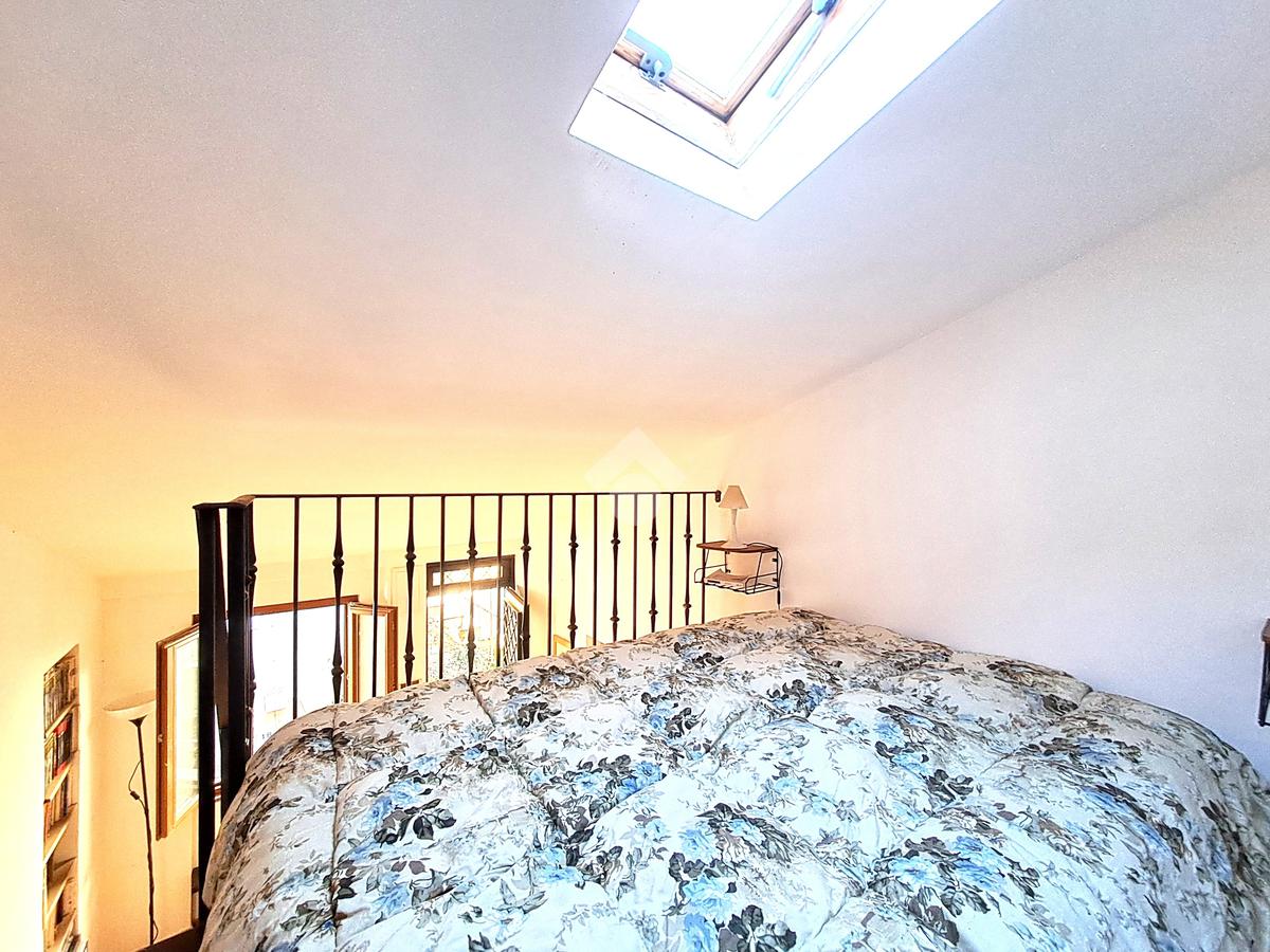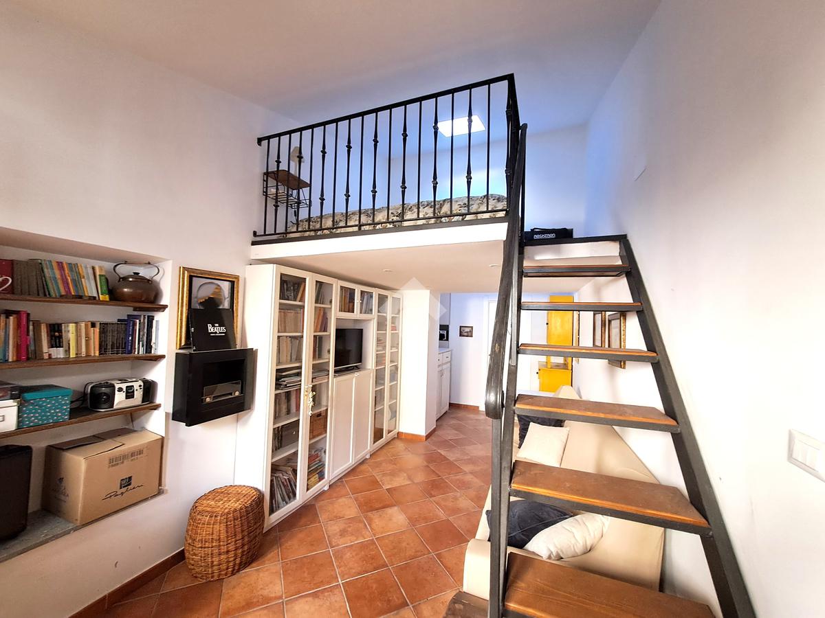 La proprietà, recentemente ristrutturata, si presenta come un ambiente unico e ben organizzato: l’ingresso conduce direttamente alla zona giorno caratterizzata da un open space con lato cottura attrezzato a vista e bagno con doccia, mentre salendo si accede alla zona notte soppalcata, che conferisce carattere e movimento agli spazi.