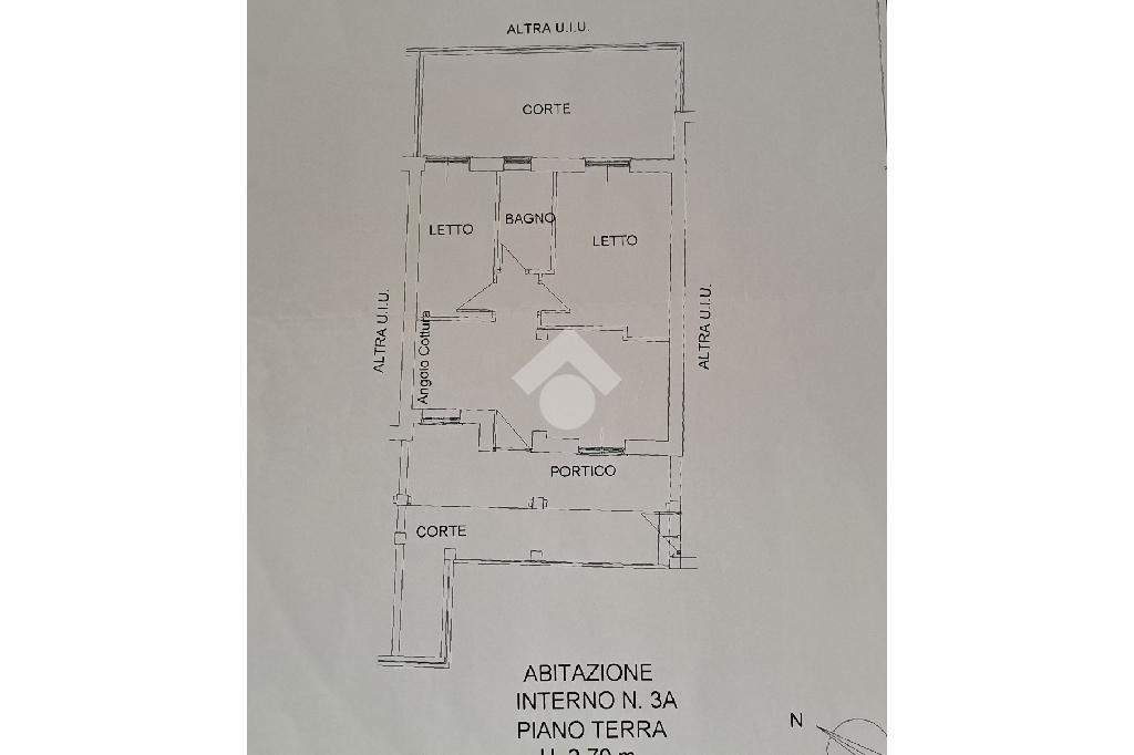 L'ingresso avviene attraverso un portico coperto, perfetto come zona relax o spazio per pranzi e cene all'aperto, che costituisce il principale sfogo esterno dell'abitazione. Dal portico si accede all'interno, dove troviamo: zona giorno open-space con soggiorno e cucina a vista, ben illuminata e accogliente, zona notte con uscita sulla corte esterna posteriore composta da Camera matrimoniale , Camera singola, ideale anche come studio o stanza polivalente e Bagno finestrato con rifiniture essenziali e funzionali.