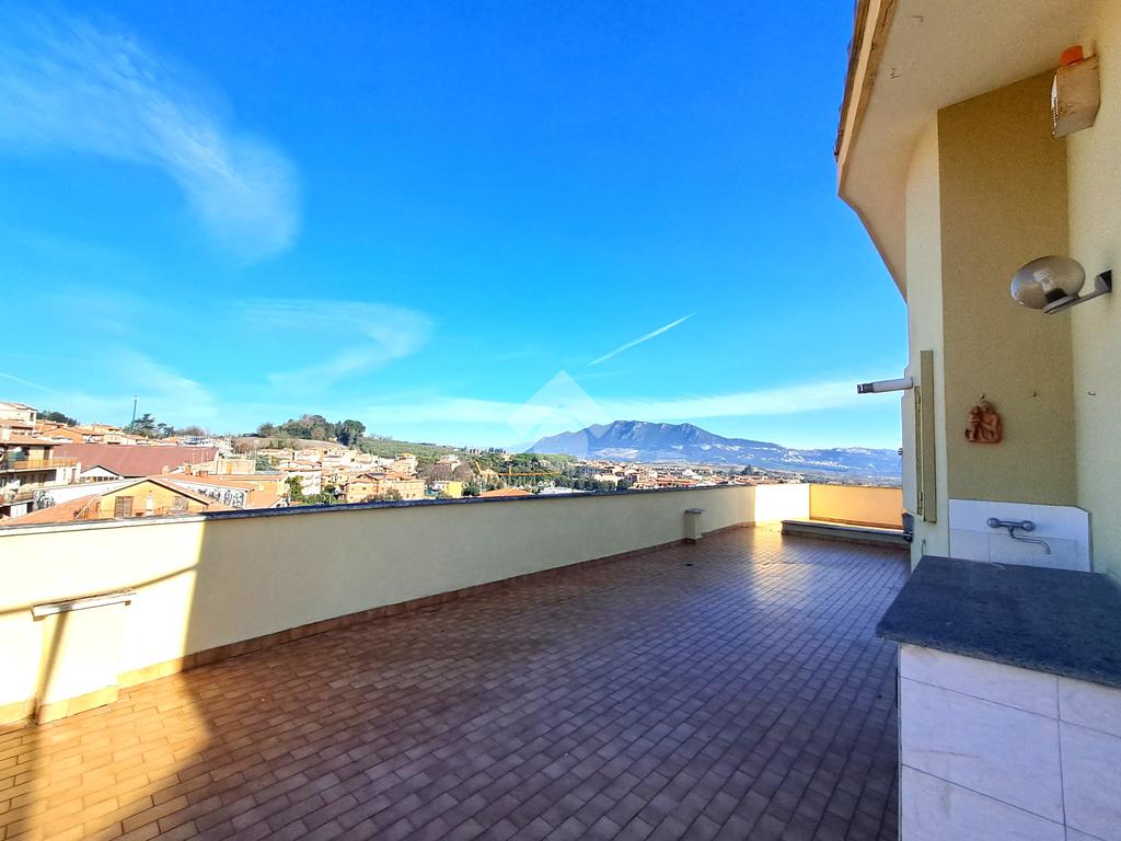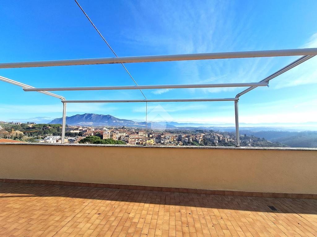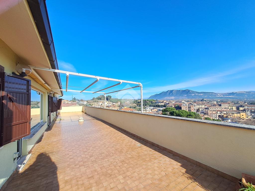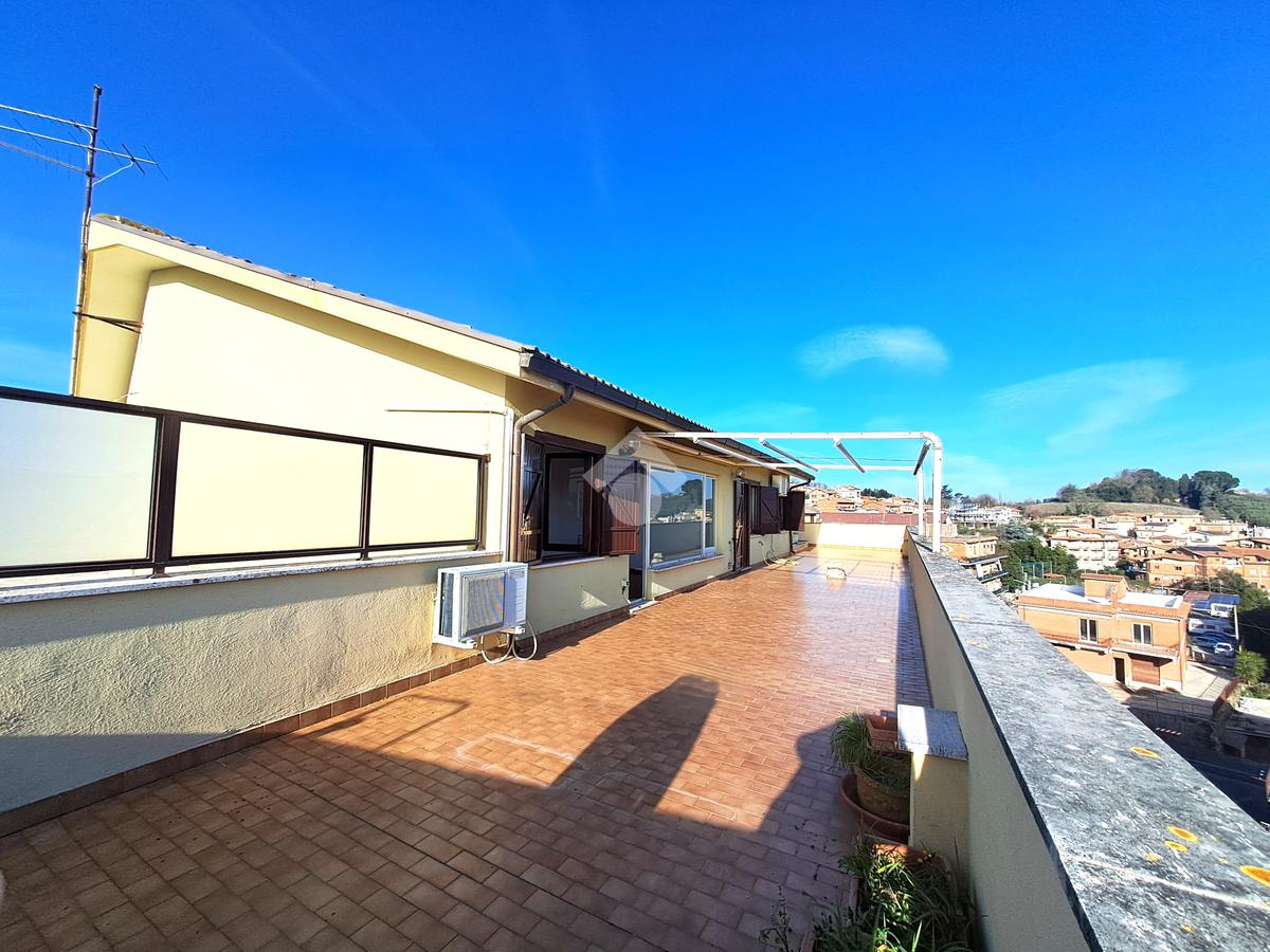 L’appartamento è un trilocale caratterizzato da ambienti ampi e molto luminosi, grazie alle uscite dirette sul terrazzo da ogni stanza, che regalano una piacevole vista panoramica sul Monte Soratte.