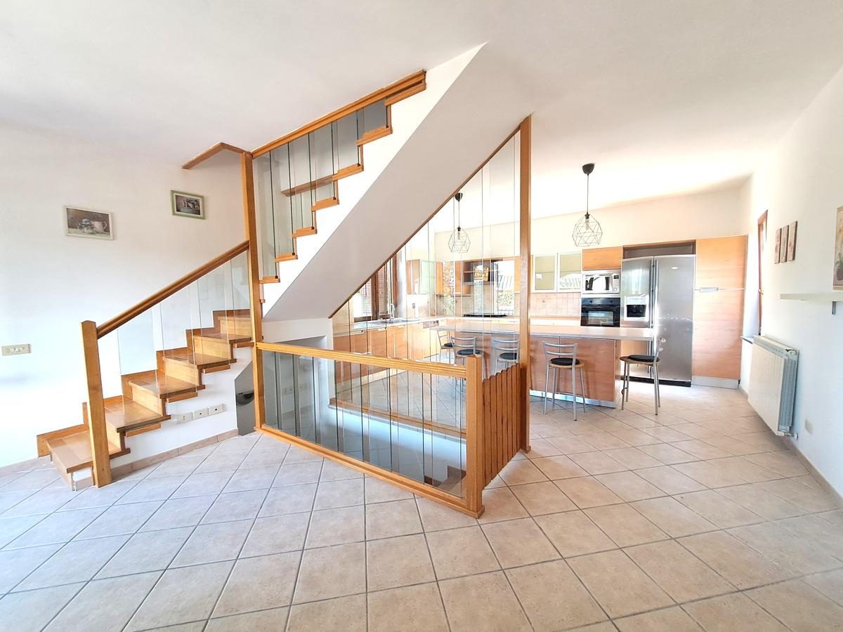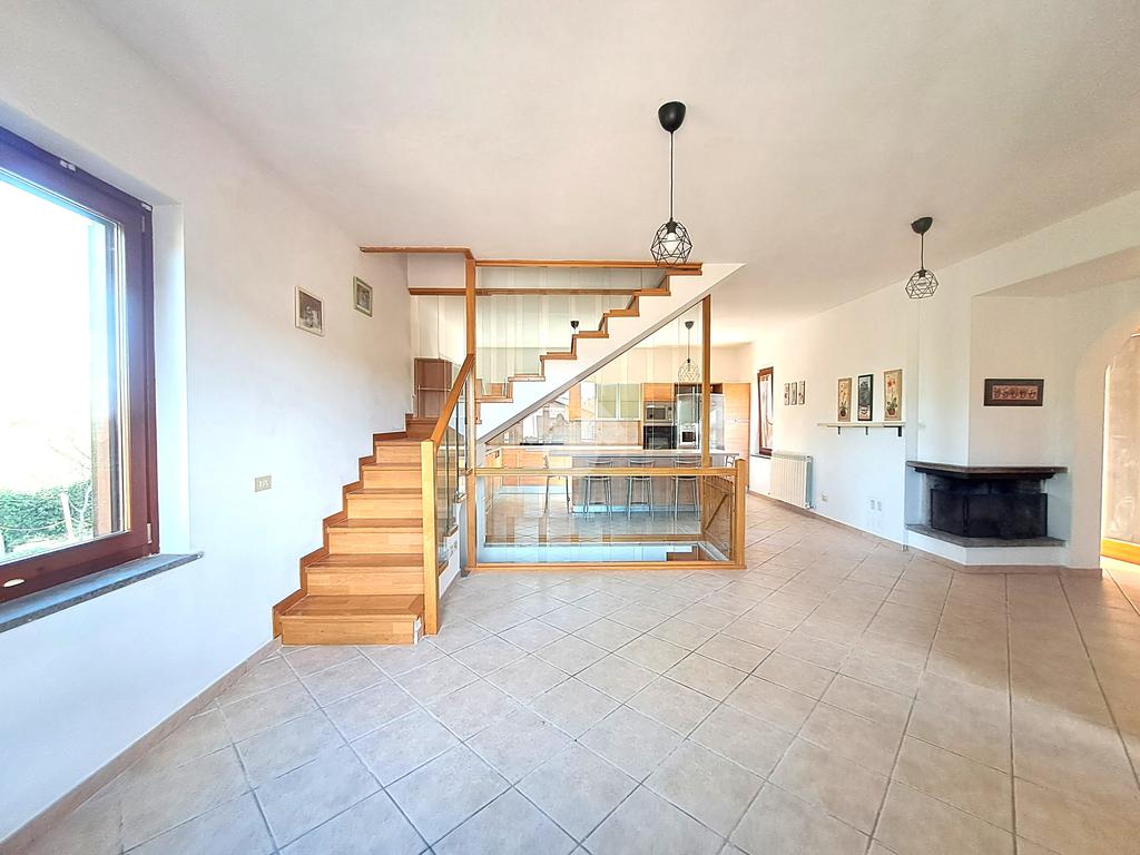 A Rignano Flaminio proponiamo in vendita villa a schiera angolare. Ci troviamo precisamente nel Consorzio di Montelarco, in contesto tranquillo e riservato, immerso nel verde e nella quiete della campagna nel 2002, sviluppa una metratura complessiva di 220 mq, disposta su tre livelli e circondata da un giardino privato di circa 700 mq, in parte pavimentato e perfettamente curato. Fin dal primo sguardo, la casa conquista per la sua luminosità e per l'atmosfera accogliente che si respira in ogni ambiente. La zona giorno è ampia e raffinata, con un elegante camino che diventa il cuore della casa durante le giornate più fredde, mentre le travi a vista donano carattere e calore. La cucina moderna con isola centrale è pensata per chi ama cucinare e vivere la convivialità, offrendo uno spazio funzionale e di grande impatto estetico.
