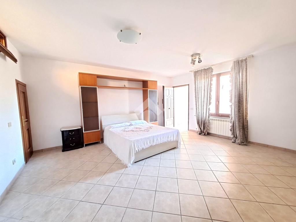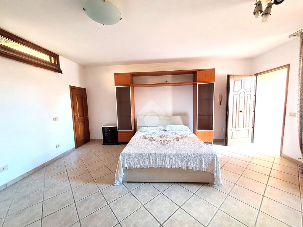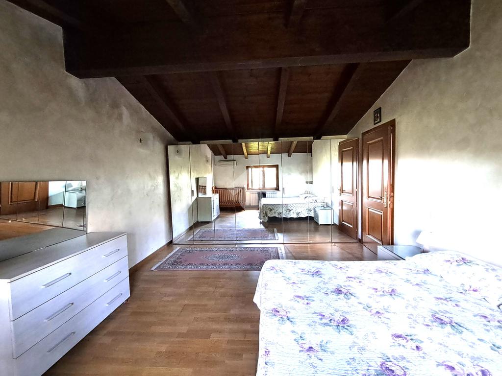 La camera matrimoniale è un'oasi di comfort: pavimento in parquet, aria condizionata e un bagno padronale con vasca idromassaggio, perfetto per rilassarsi a fine giornata.