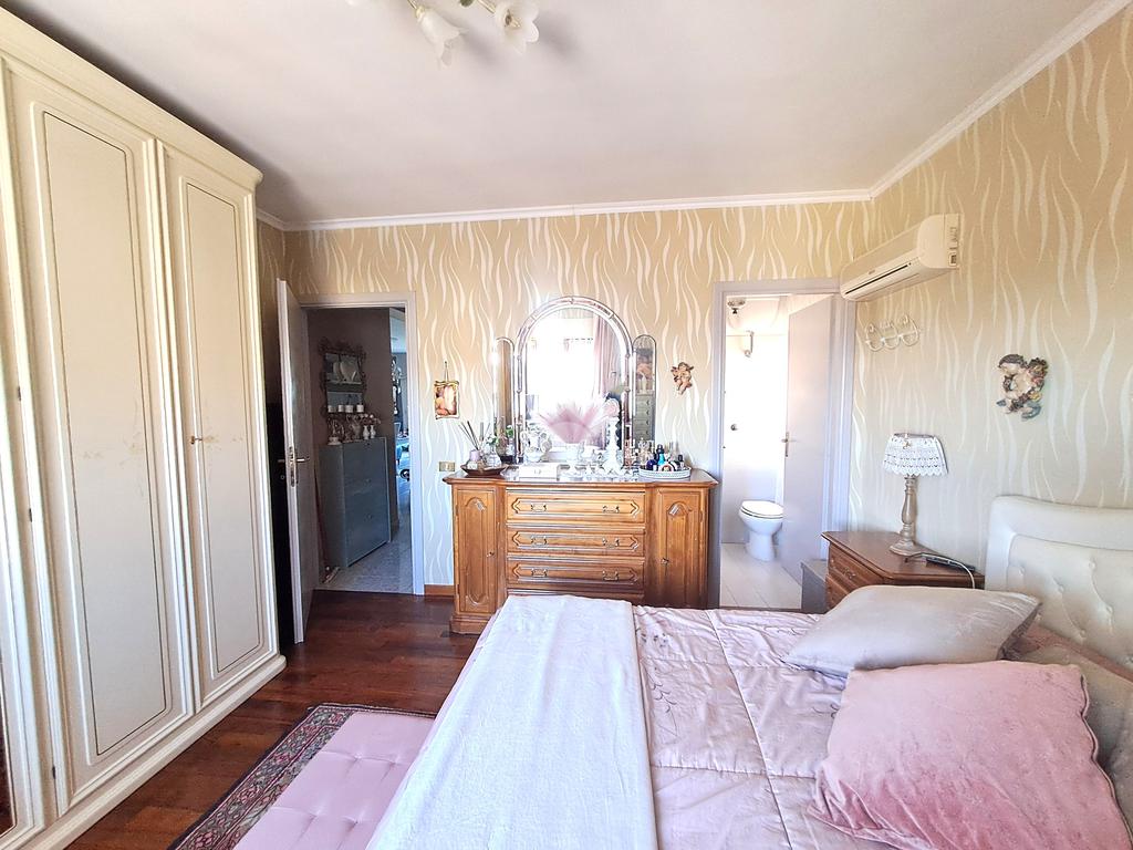 Un elegante disimpegno introduce la zona notte, pensata per garantire privacy e tranquillità. Qui troviamo la camera matrimoniale principale, dotata di servizio interno, una seconda camera matrimoniale di ottime dimensioni e un terzo ambiente versatile, perfetto come cameretta, studio, zona hobby o pratico ripostiglio, a seconda delle necessità. Completa la zona notte un bagno ampio e ben rifinito, dotato di tutti i comfort.